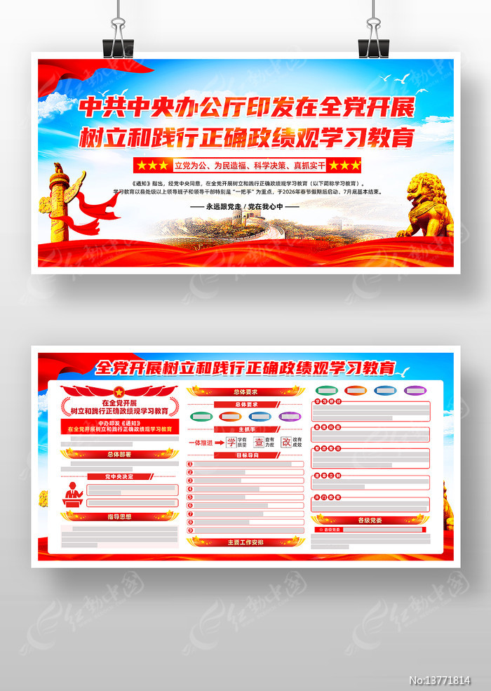 红动中国提供原创全党开展树立和践行正确政绩观学习教育展板下载,作品以正确政绩观为主题而设计,可作为学习教育展板,正确政绩观,全党教育,学习教育,的通知等主题图片使用,全党开展树立和践行正确政绩观学习教育展板,编号13771814,格式PSD,尺寸6803x3402毫米,大小54.73 MB,欢迎会员进行下载。
