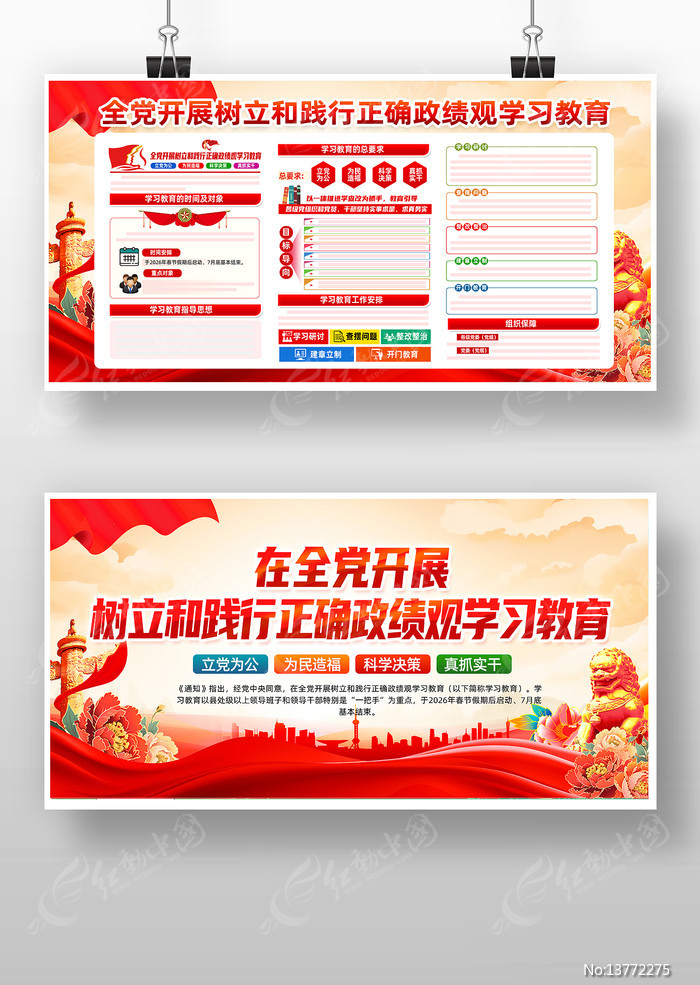 红动中国提供原创开展树立和践行正确政绩观学习教育宣传栏下载,作品以2026学习教育为主题而设计,可作为2026学习教育,学习教育展板,践行政绩观,树立和践行,树立政绩观等主题图片使用,开展树立和践行正确政绩观学习教育宣传栏,编号13772275,格式PSD,尺寸2400x1200毫米,大小182.62 MB,欢迎会员进行下载。