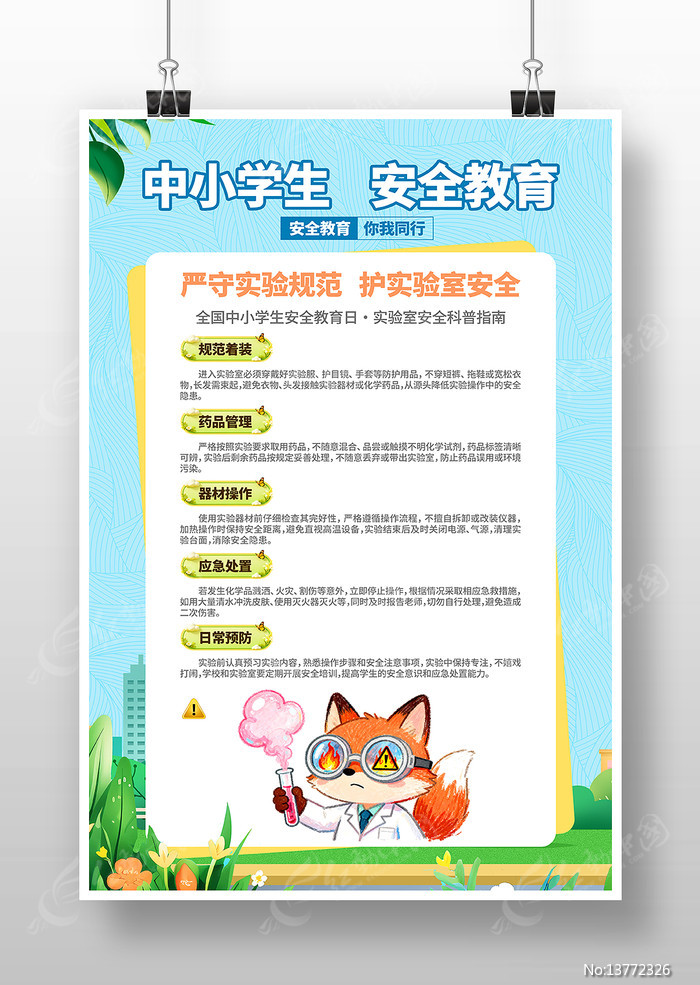 当前位置:设计网站>平面广告>海报>节日节气>实验室安全中小学生安全安全教育日科普海报实验室安全中小学生安全安全教育日科普海报