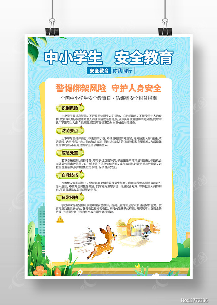 当前位置:设计网站>平面广告>海报>节日节气>防绑架安全中小学生安全安全教育日科普海报防绑架安全中小学生安全安全教育日科普海报