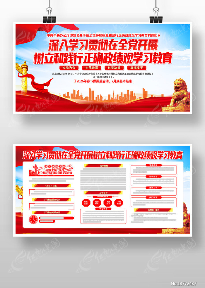 开展树立和践行正确政绩观学习教育党建展板