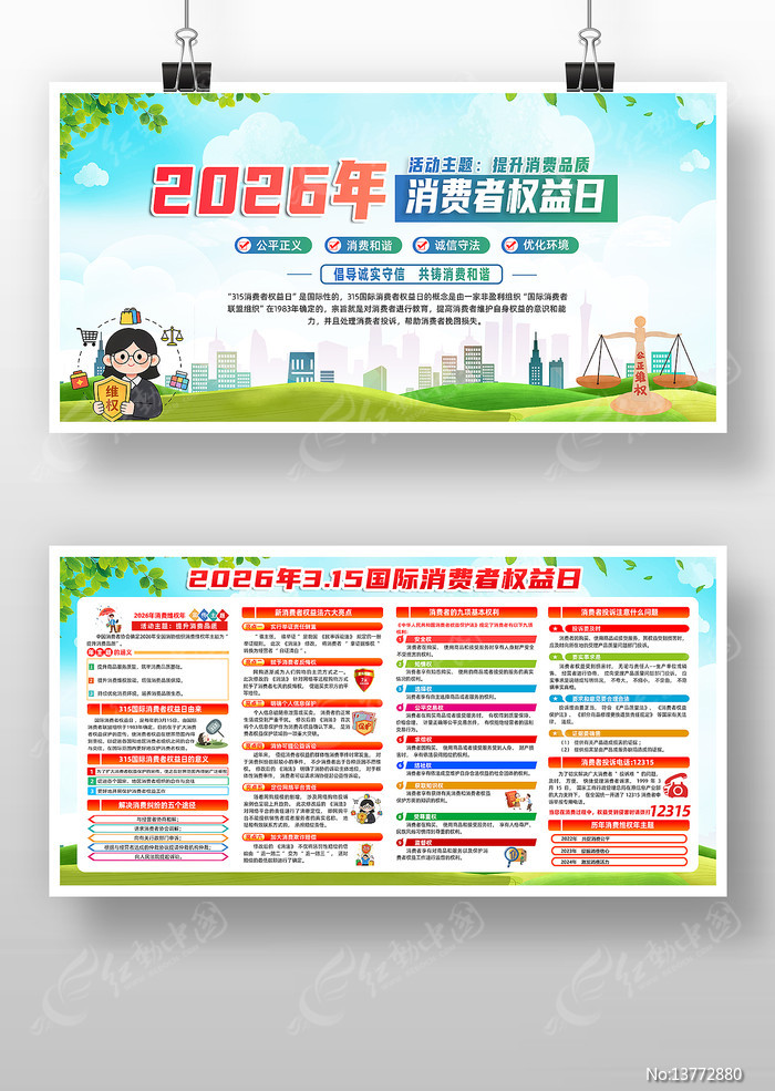 红动中国提供原创消费者权益日下载,作品以2026年消费维权年主题为主题而设计,可作为2026年消费维权年主题,消费者权益日,国际消费者,消费者维权,315消费者等主题图片使用,消费者权益日,编号13772880,格式PSD,尺寸6803x3402毫米,大小57.67 MB,欢迎会员进行下载。
