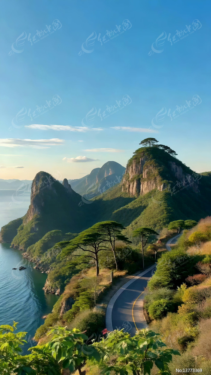 山水间蜿蜒公路自然风光