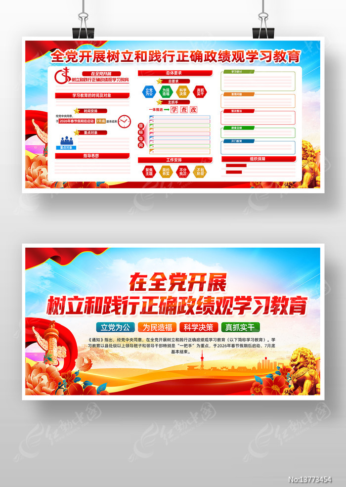 红动中国提供原创全党开展树立和践行正确政绩观学习教育展板下载,作品以学习教育为主题而设计,可作为2026学习教育,学习教育展板,践行政绩观,树立和践行,树立政绩观等主题图片使用,全党开展树立和践行正确政绩观学习教育展板,编号13773454,格式PSD,尺寸2400x1200毫米,大小117.09 MB,欢迎会员进行下载。