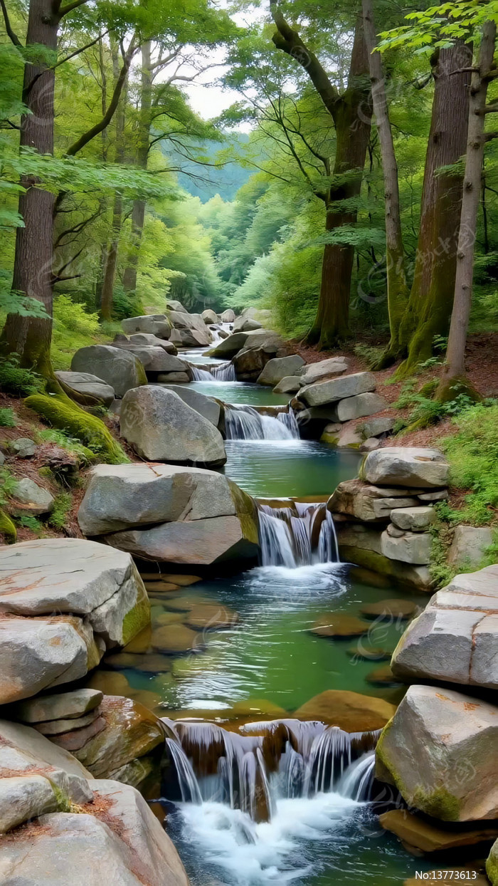 森林中溪流景观
