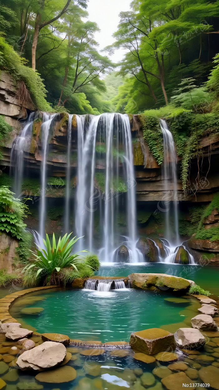 森林中的瀑布自然景观