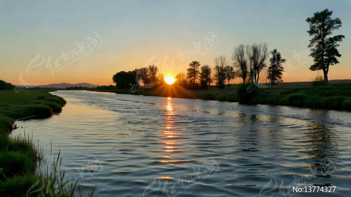 河流夕阳自然风光