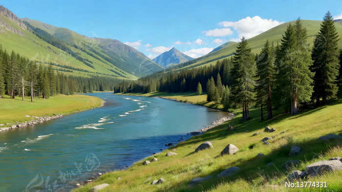 山间河流森林自然风光