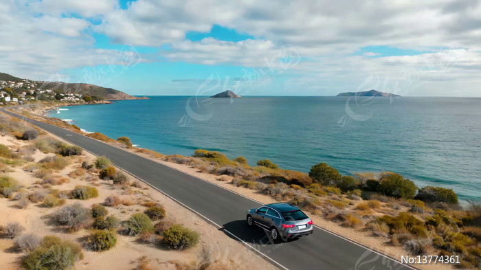 沿海公路行驶的汽车