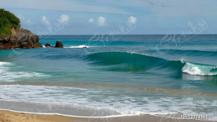 海边海浪拍打沙滩景象