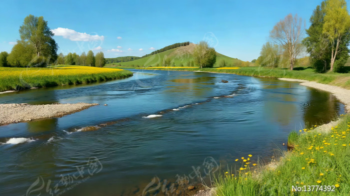 河畔田野自然风光