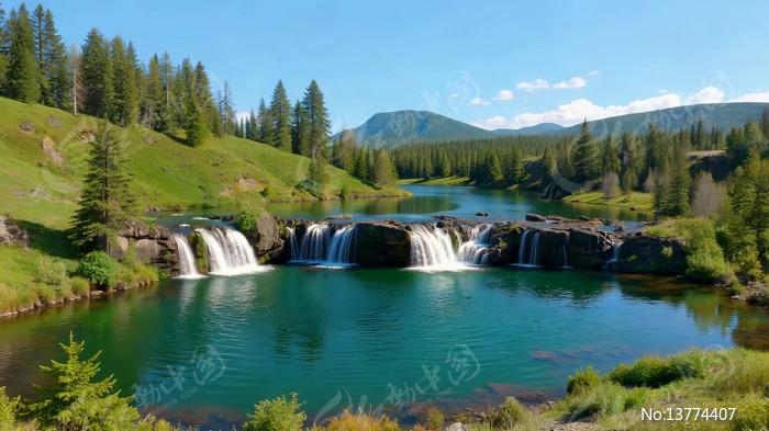 山间瀑布森林自然风光