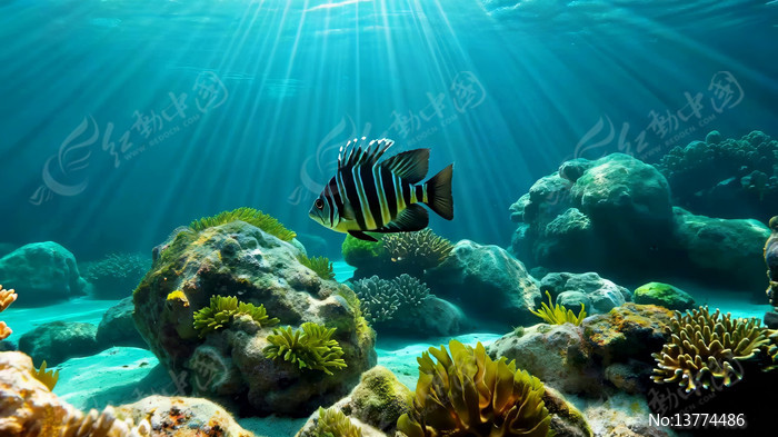 海底鱼群与珊瑚礁景象