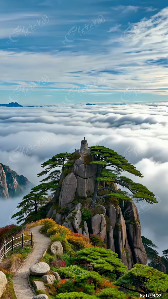 高山云海松树风景