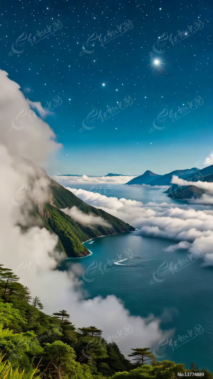 星空下的山水云海自然风光