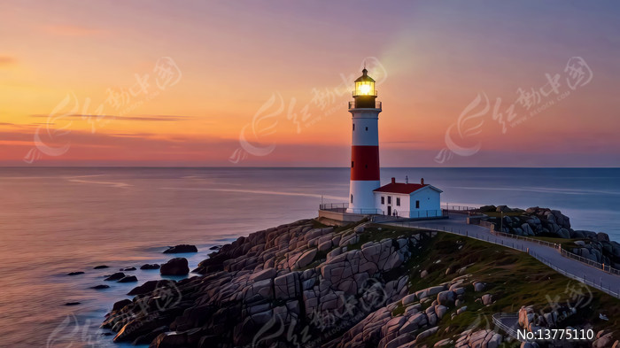 海边灯塔日落风景