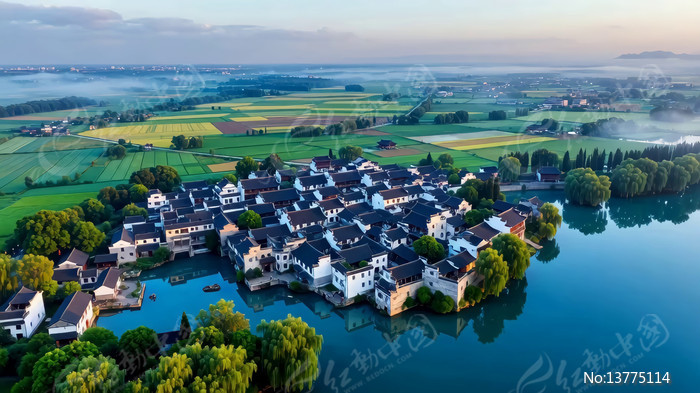 江南水乡村落航拍全景