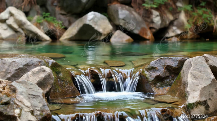 山间溪流岩石流水景观