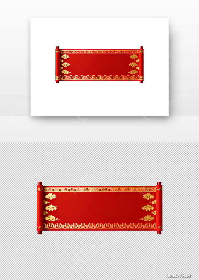 当前位置:素材网站>免抠元素>边框纹理>红色卷轴金色云纹与波浪边饰