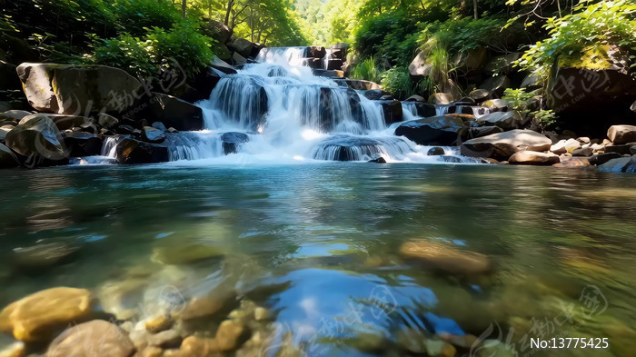 山林间溪流瀑布自然景象