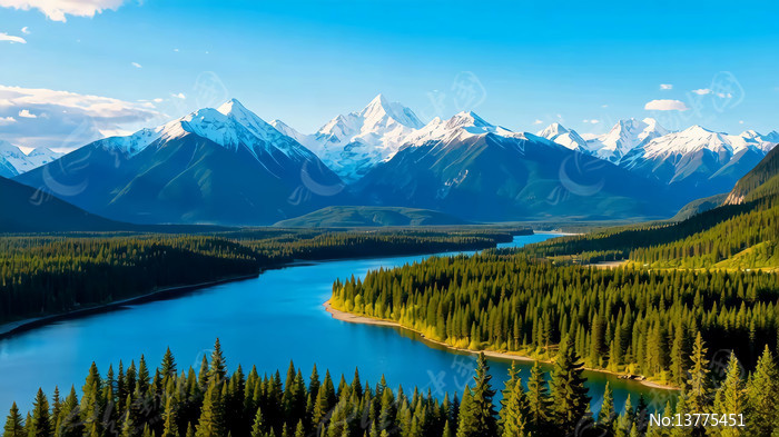 雪山森林湖泊自然风光