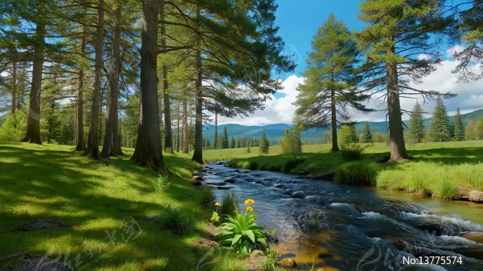 森林溪流自然风光全景