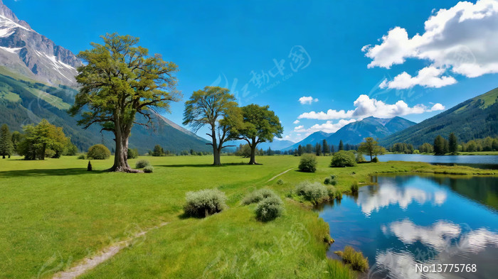 山间草地湖泊自然风光