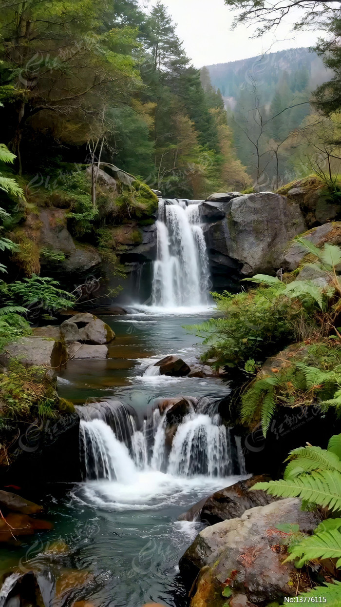 山间森林瀑布溪流景观