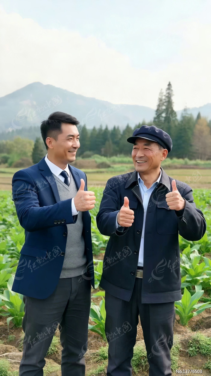 两人在农田竖起大拇指