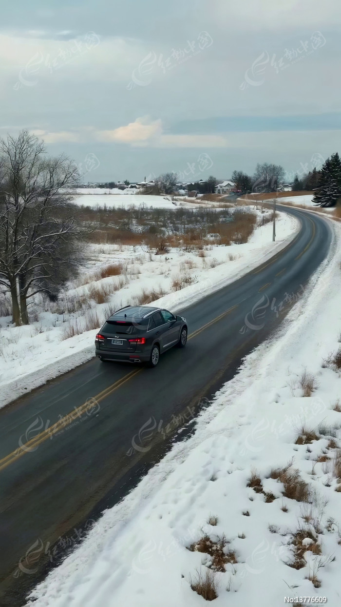 雪地公路行驶的汽车