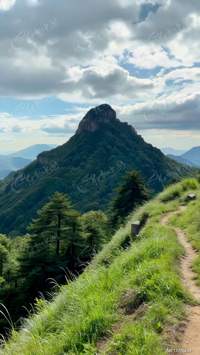 山间小径旁的秀丽山峰风光