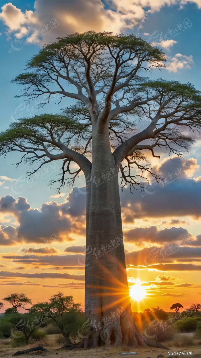 夕阳下的高大猴面包树