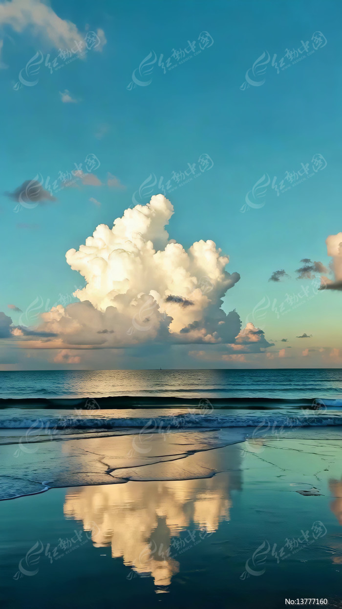海边蓝天白云倒影风景素材
