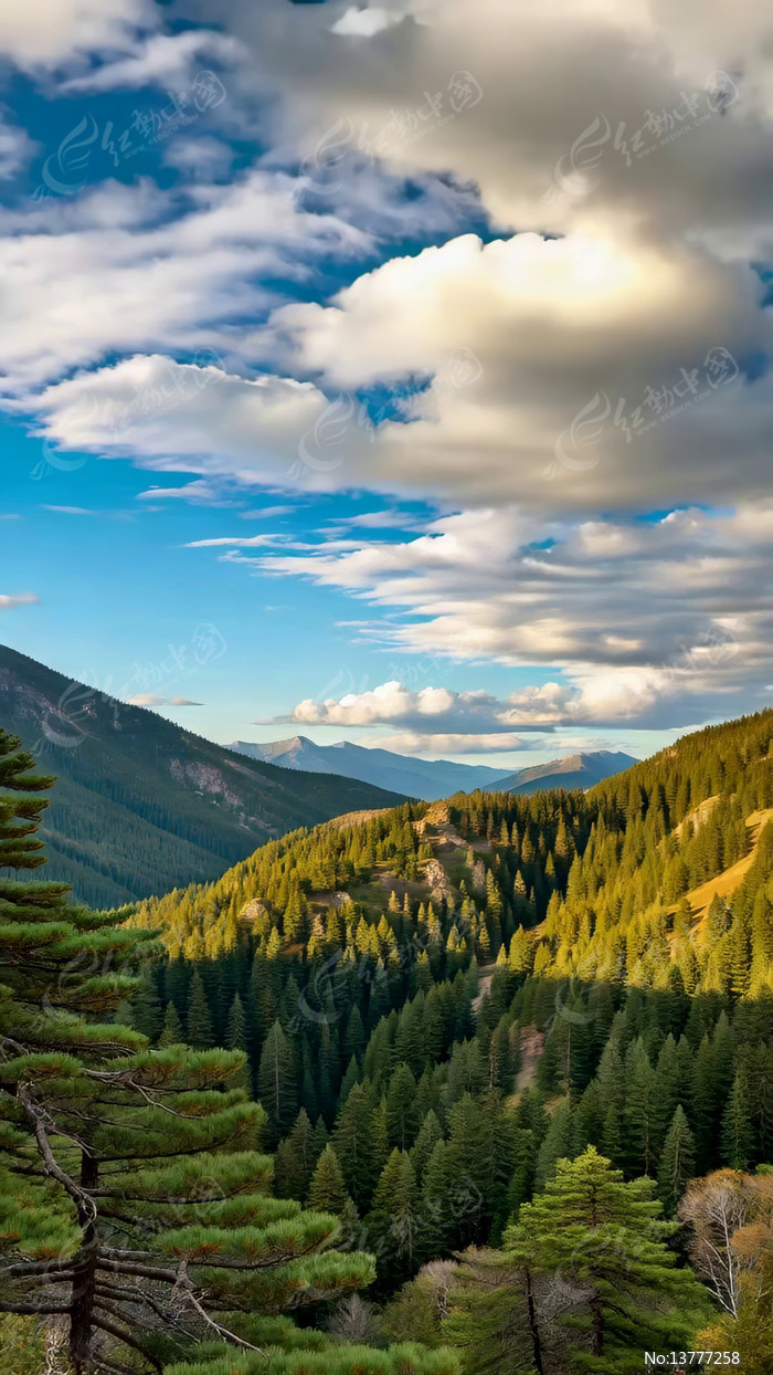 山林与蓝天白云自然风光