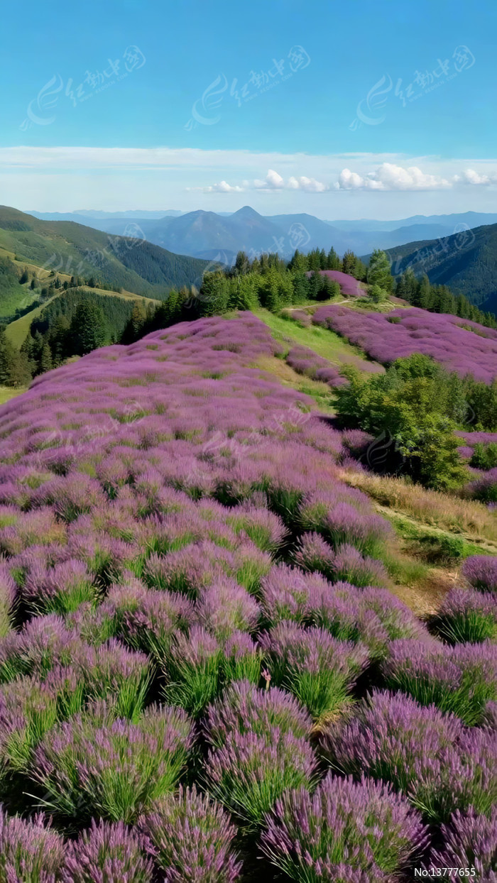 山坡上的紫色薰衣草花海