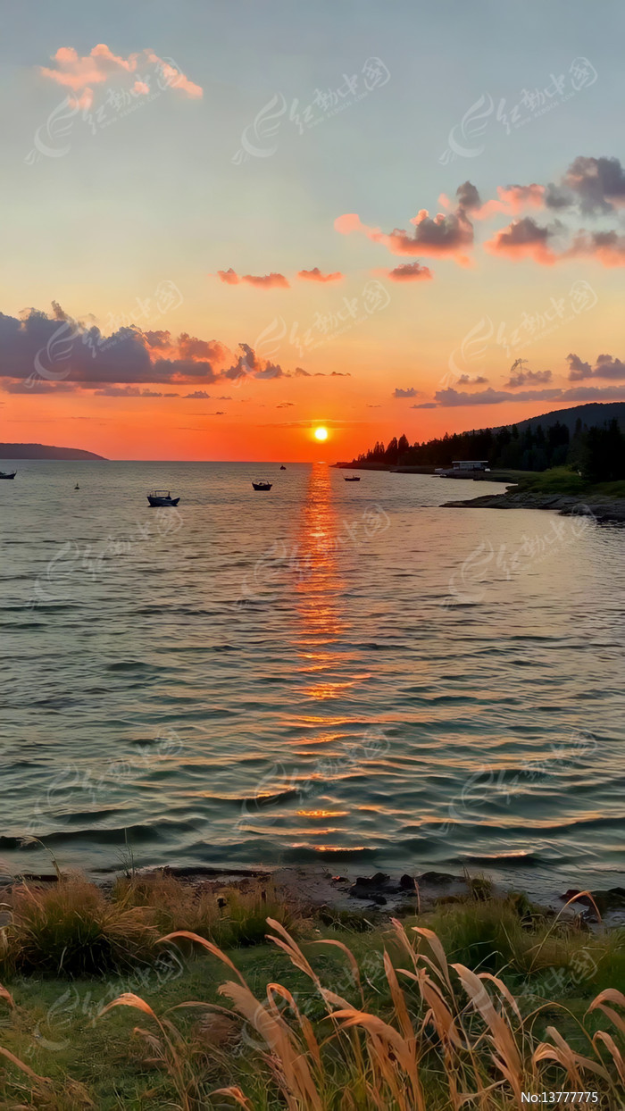 海边日落时分湖光天色美景