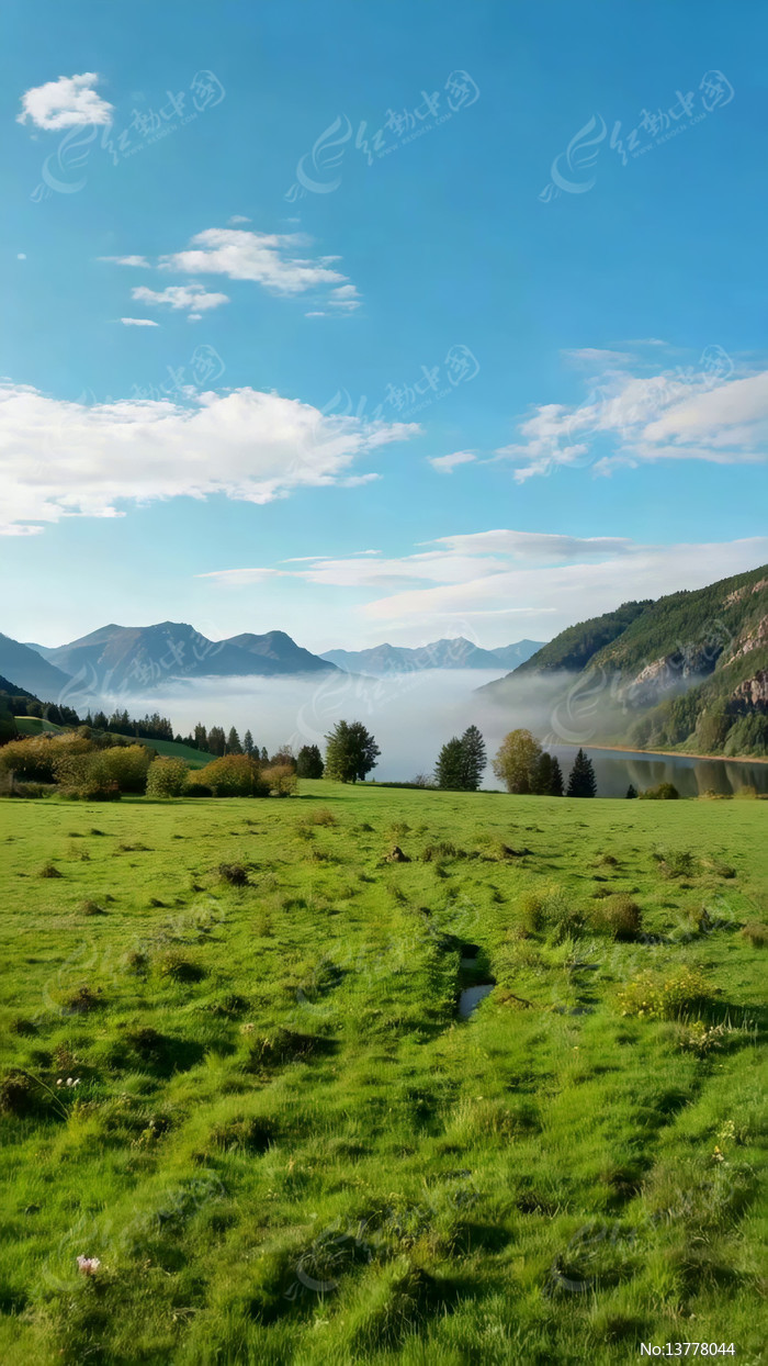 山间草地湖泊自然风光