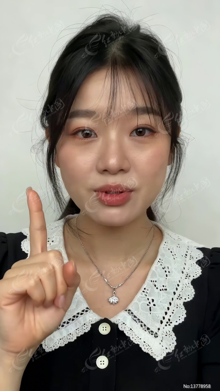 年轻女性竖指示意动作画面