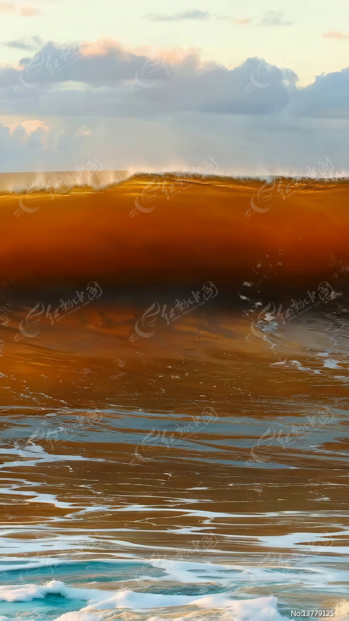 夕阳下大海海浪景观