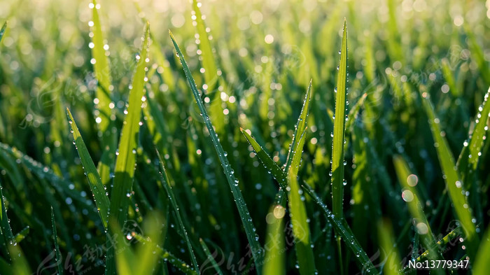 清晨带露珠的绿色草地