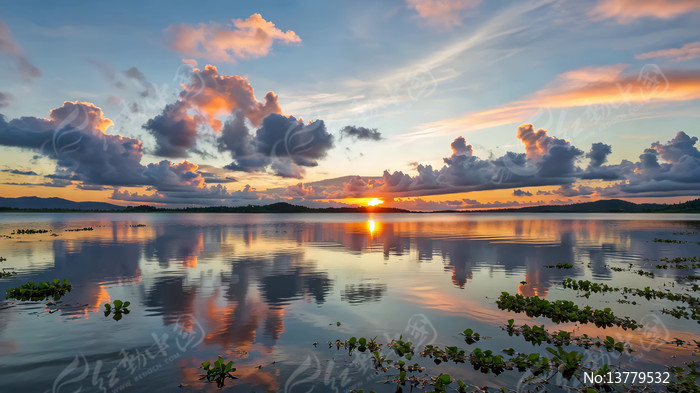 湖面日落自然风光