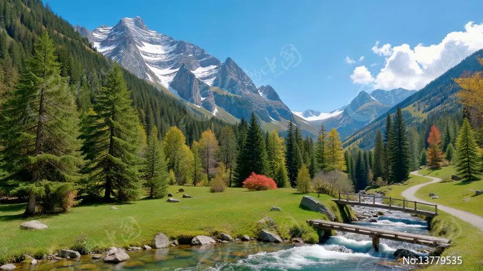 山间森林溪流自然风光
