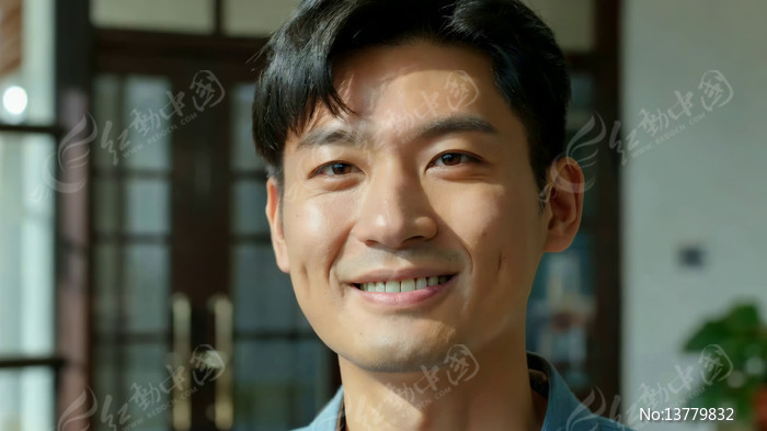 室内男子微笑特写素材