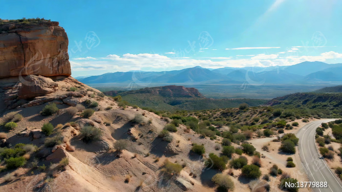 沙漠公路旁岩石山脉景观