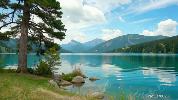 湖畔森林自然风光
