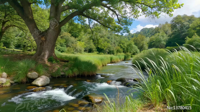 溪边大树自然风光