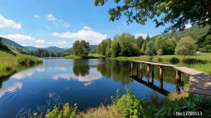 湖边木栈道自然风光