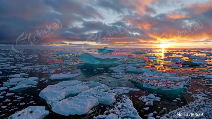 北极冰川日落景象