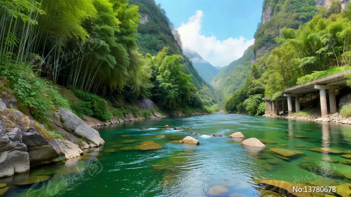 山间河流竹林自然风光