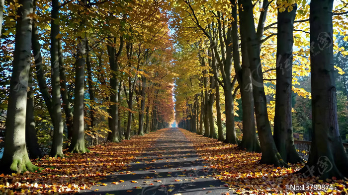 秋日森林落叶铺就的林间小路